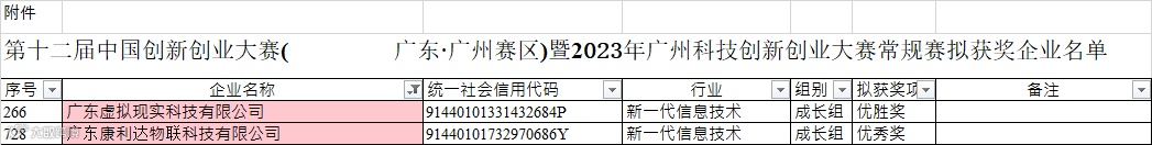 第十二届中国创新创业大赛(广东·广州赛区)暨2023年广州科技创新创业大赛常规赛拟获奖企业名单已公示,祝贺燧光、康利达物联分别获得优胜奖、优秀奖。