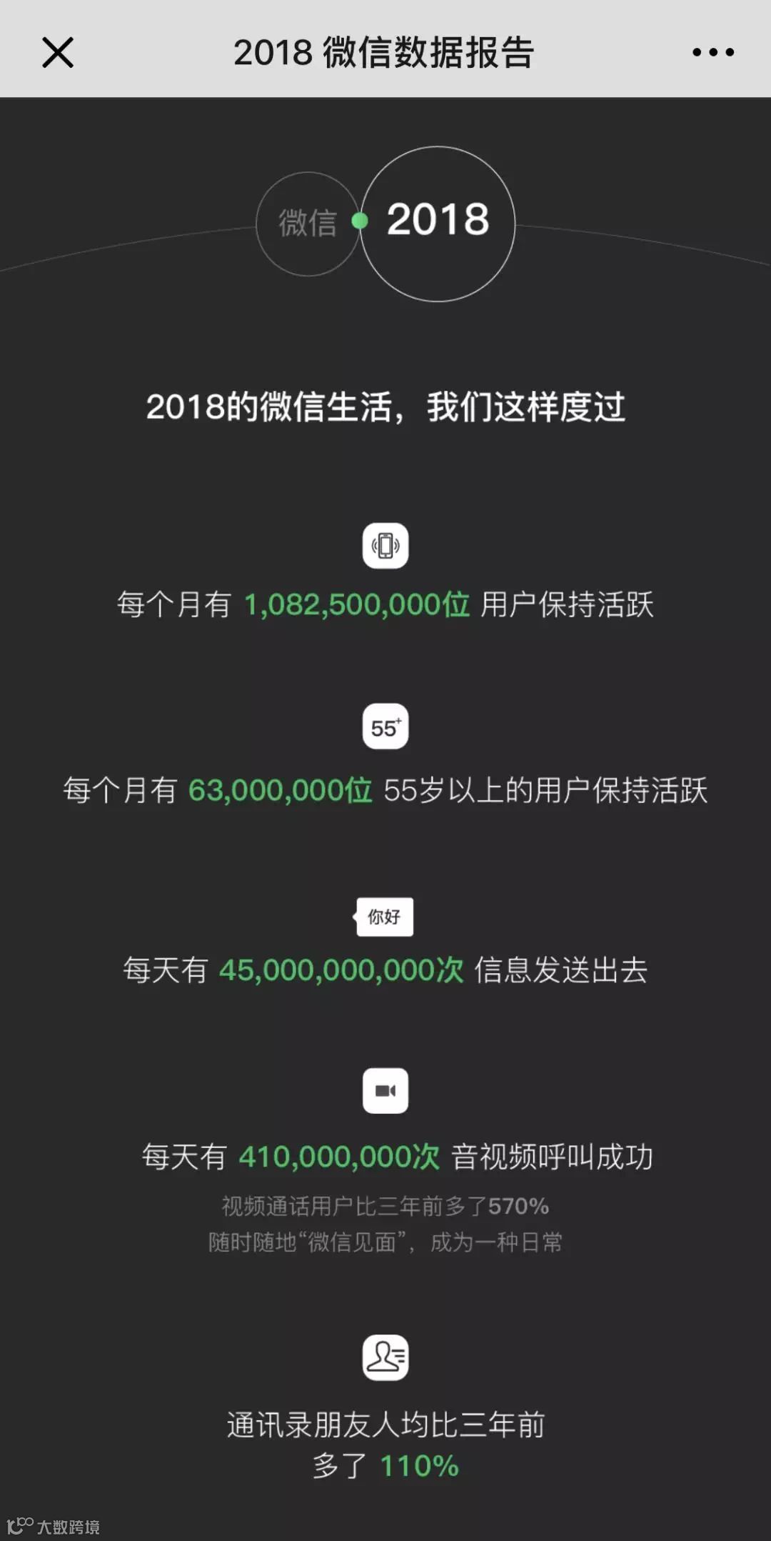 正如前面提到的微信 DAU 已经接近 10 亿,生态已经非常完善。从城市到农村,从老人到小孩,甚至部分外国人,也经常使用微信。