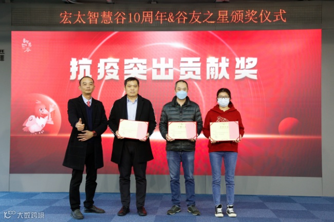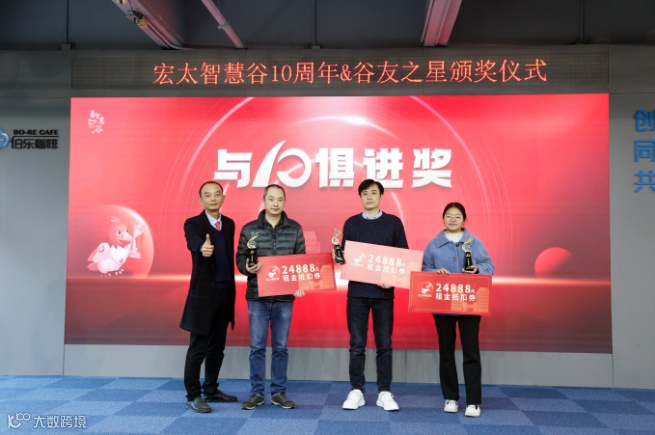 十年风雨兼程,十年初心不改。年华流转,不变的是创立时的初心;岁月如流,永恒的是坚定深耕“双创”的决心。为了感谢新老谷友企业的一路相伴,特设定了宏太智慧谷开园10周年特别奖,表彰入园不满一年,发展稳健,高成长的新谷友,以及感谢和我们一路同行的老谷友。一起见证荣誉,“与10俱进奖”、“新锐精鹰奖”在大家的掌声中完成压轴的颁奖典礼。