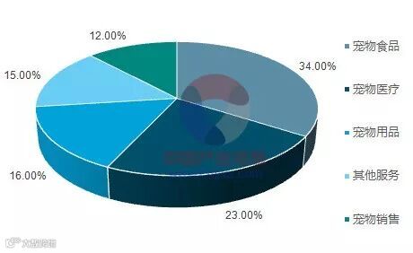传统的宠物消费里,宠物食品的消费占比最高,高达34%,宠物用品、宠物服务等消费远远落后。
