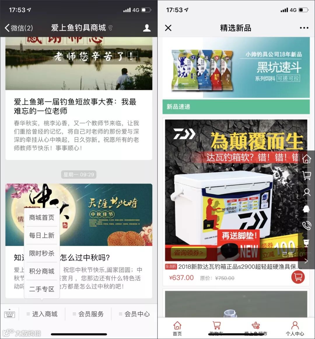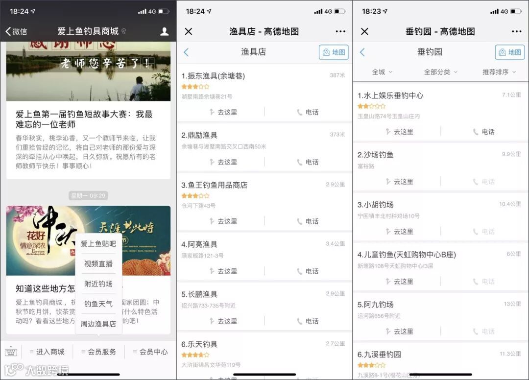 爱上鱼钓具商城在公众号菜单栏为粉丝提供一系列贴心的会员服务,包括附近钓场、天气、周边渔具店查询等,这些看似与商城销量、吸粉效果无关的服务,正是影响用户体验度和用户黏度的关键因素之一。另外,推出这些服务能够培养用户打开公众号和商城的良好习惯,为商城提供潜在的消费可能。