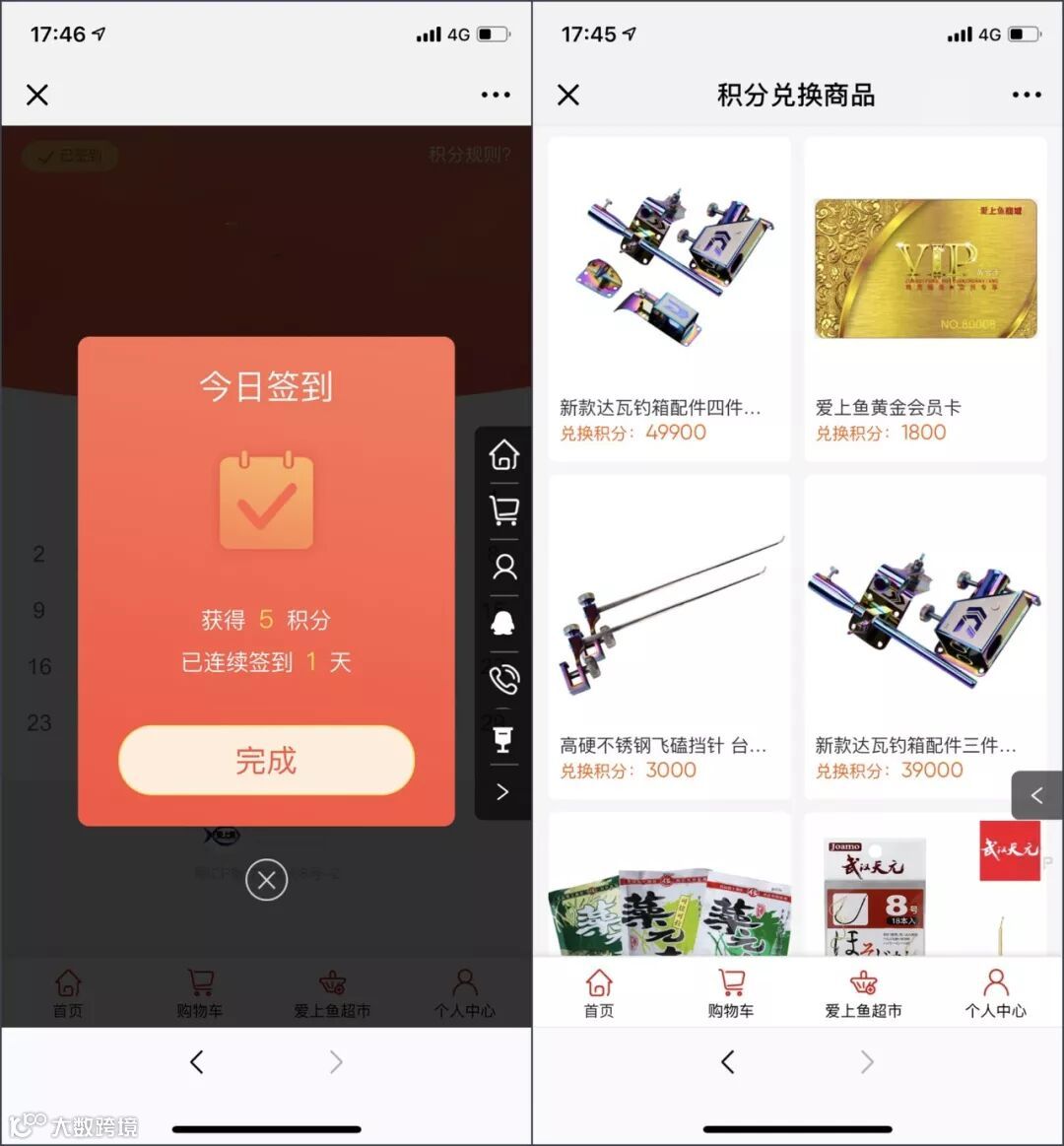 在保证产品质量的前提下,商城采用积分制,会员通过不断的复购行为积累相应的积分,以积分兑换商城的钓具商品,这些对热爱渔具的用户来说,都是一种优惠。