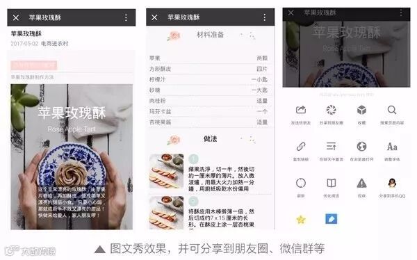 图文秀与场景秀类似,商家发布图文秀的内容可以是关于产品的科普知识,也可以是系列产品的专题内容,或者一次营销活动等。用户可以将其分享给好友或朋友圈,形成传播。