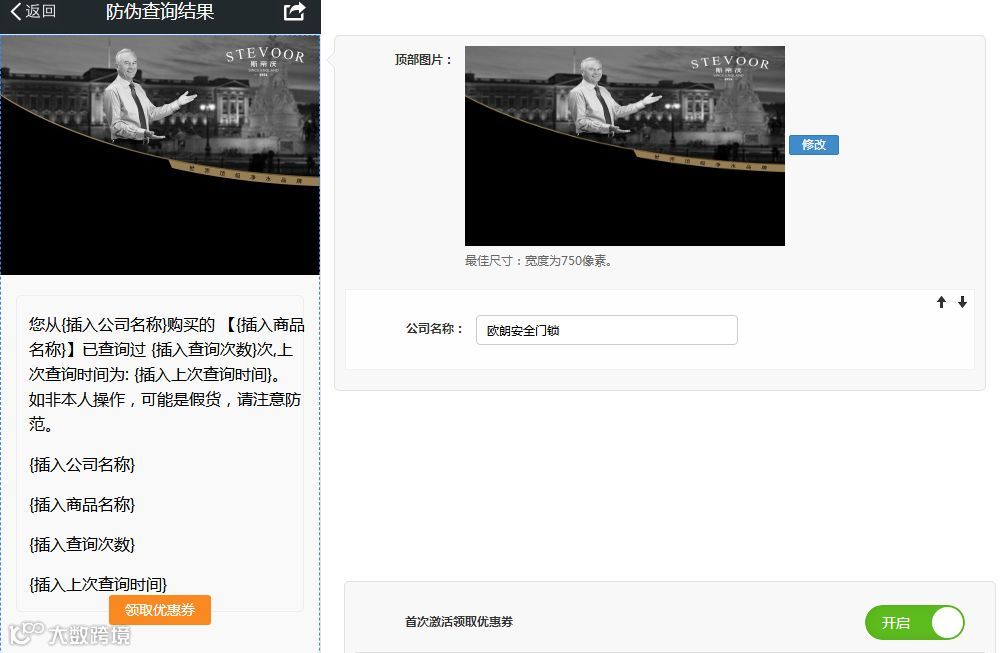 另外,用户在使用防伪码查询时,商家还可以进行一轮优惠券营销,让用户在查询时领取相应的优惠券,增加二次购买率。