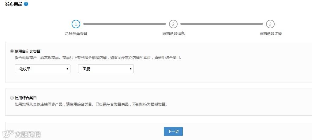 在发布商品的过程中,商家根据自身需要,自行对商品信息进行合理的编辑修改。完成商品发布过程的步骤分为选择商品类目、编辑商品信息、编辑商品详情。