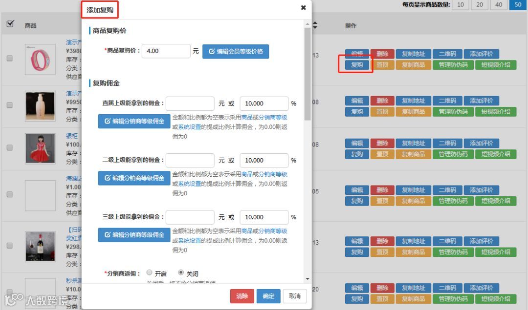 对于商城的老客户,商家可以给予一定的优惠政策进行维护和留存,降低商品价格,以更优惠的“复购价”来吸引老客户也是一种有效的留存方式。同时设置复购佣金,激励会员的分销积极性。