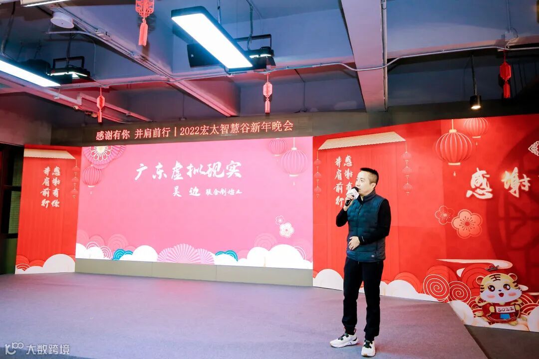2021年,园区继续引进一批新一代信息技术产业的优秀企业,为打造ABC+产业生态注入新活力。作为新入园谷友企业代表,广东虚拟现实联合创始人吴边在晚会上发言。