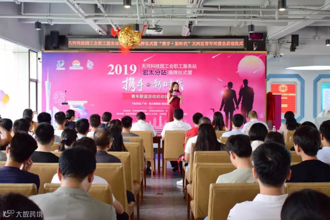 7月20日,由天河科技园管委会、天河软件园管委会、天河智慧城管委会主办,天河科技园总工会、宏太智慧谷、中国南方人才市场共同承办的2019天河科技园工会职工服务站宏太分站揭牌仪式暨“携手·新时代”天河区青年联谊活动启动仪式在宏太智慧谷隆重举行。