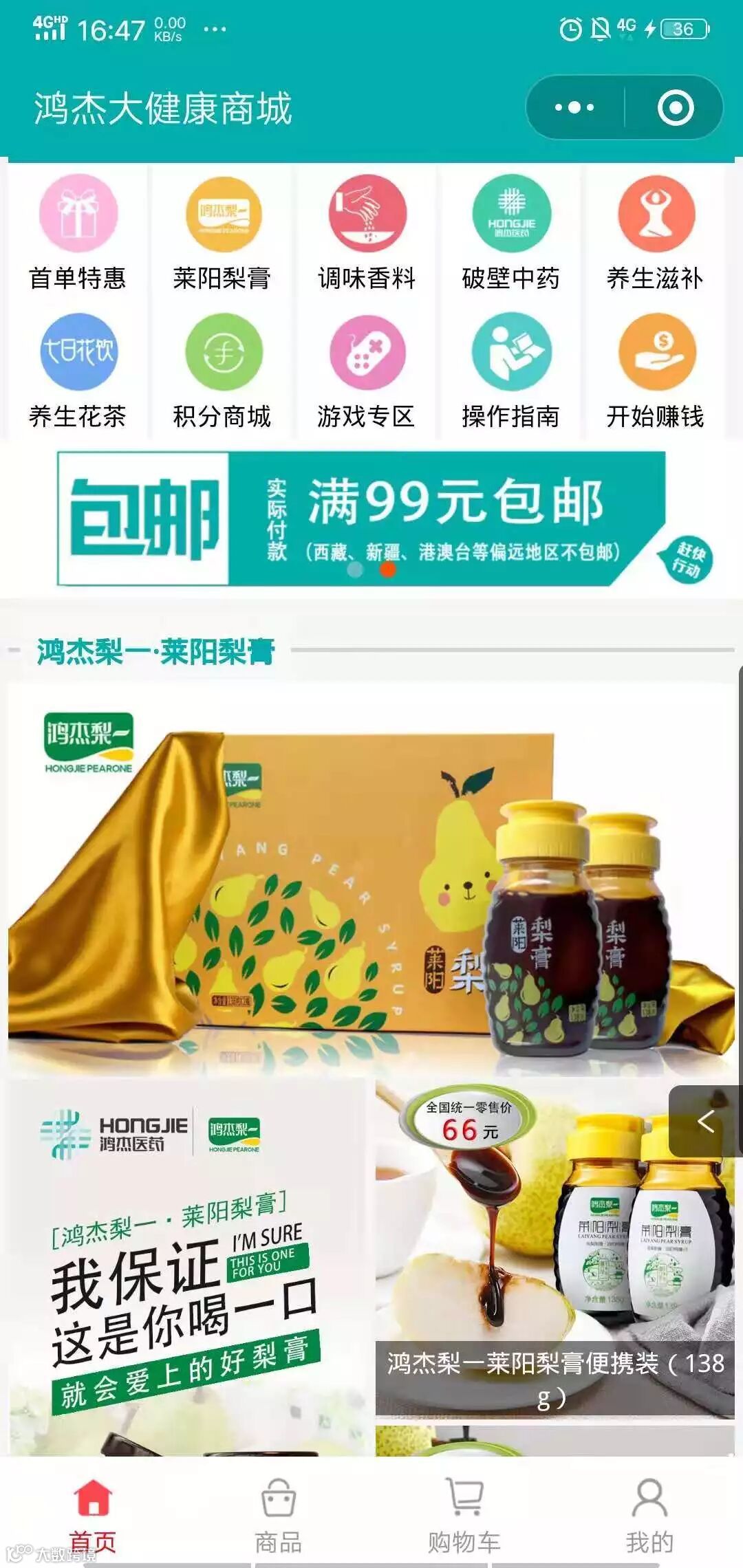 为了实现迅速获客的目标,鸿杰大健康商城通过客满小程序,在商城内设置了“莱阳梨膏、养生滋补、调味香料”等区域,凭借着丰富的品类和“好货低价”的特点,在全方位满足消费者需求的基础上,迅速提升商城的人气,帮助商城迅速获客。