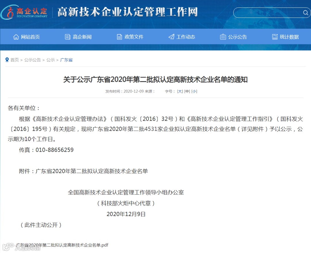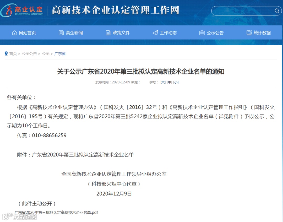 近日,全国高新技术企业认定管理工作领导小组办公室发布广东省2020年拟认定高新技术企业名单通知。通知显示,宏太智慧谷15家谷友企业拟通过高新技术企业认定,进入公示阶段!