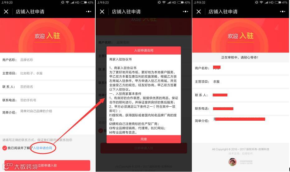 入驻成功后,