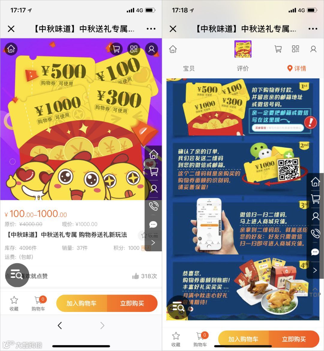 考虑到更多用户送礼的不同需求,商城推出了不同价格的购物礼券,用户可购买礼券用于赠送,收到礼券的用户可直接在商城内进行购物。