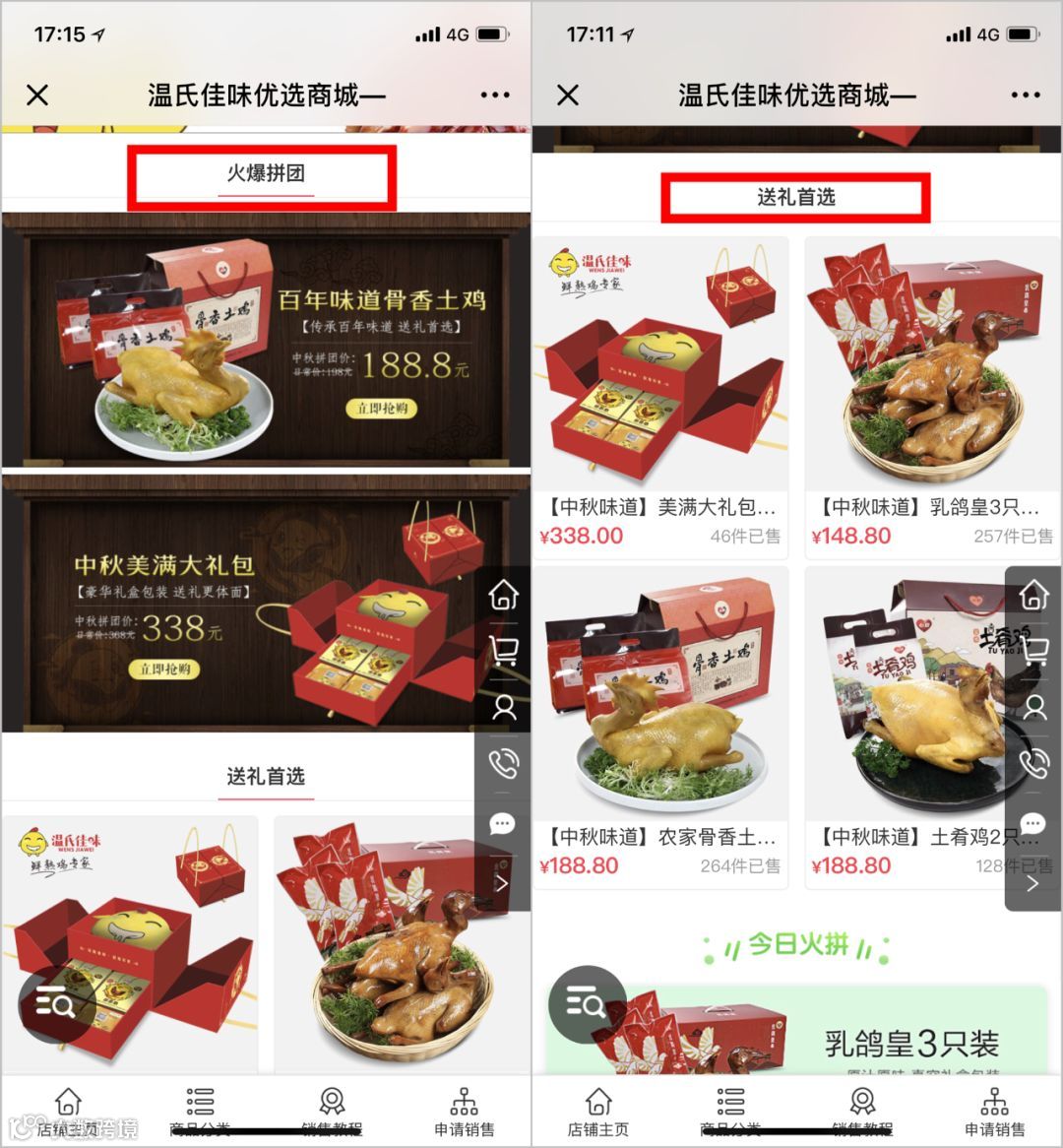 即将到来的中秋节是商家每年的营销必备节日,温氏佳味选择了多款商品组合成礼包形式,满足用户的多样化需求,提供过节送礼的多种选择。