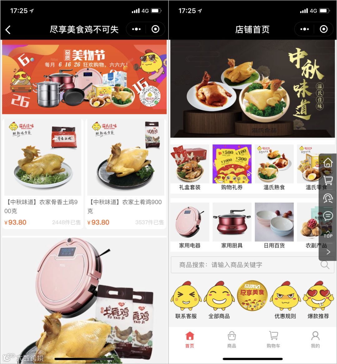 基于微信小程序的多流量入口和极大的便捷性,温氏佳味同时开通了小程序商城,用户可直接通过小程序进入商城进行消费。微商城+小程序的结合,最大程度吸引微信用户和流量,达到更好的吸粉引流效果。