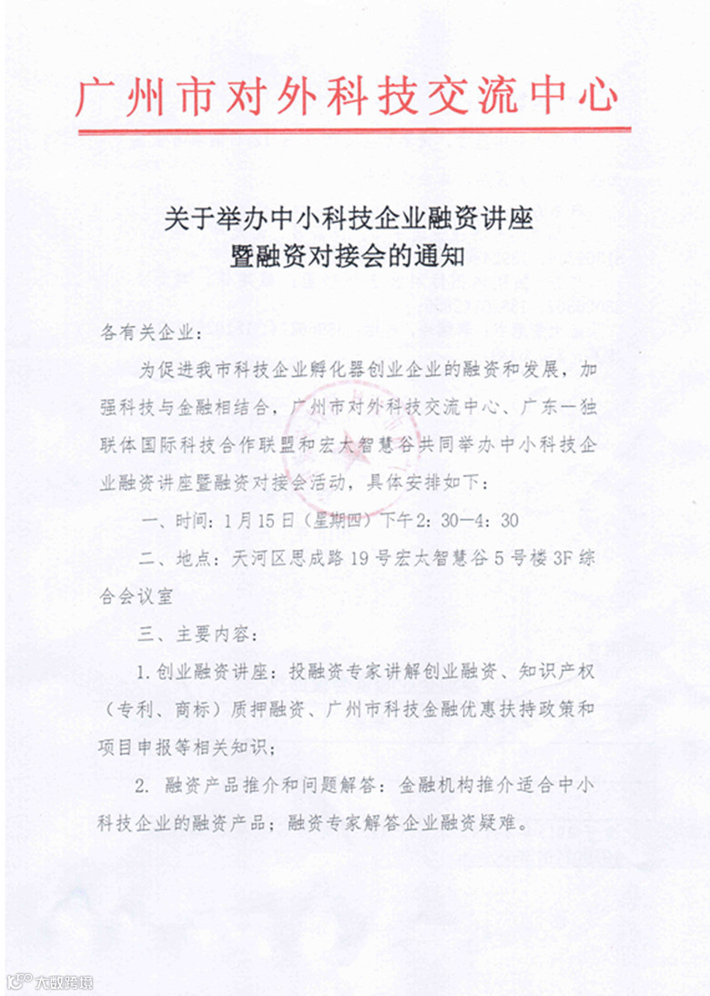附件:关于举办中小科技企业融资讲座暨融资对接会的通知