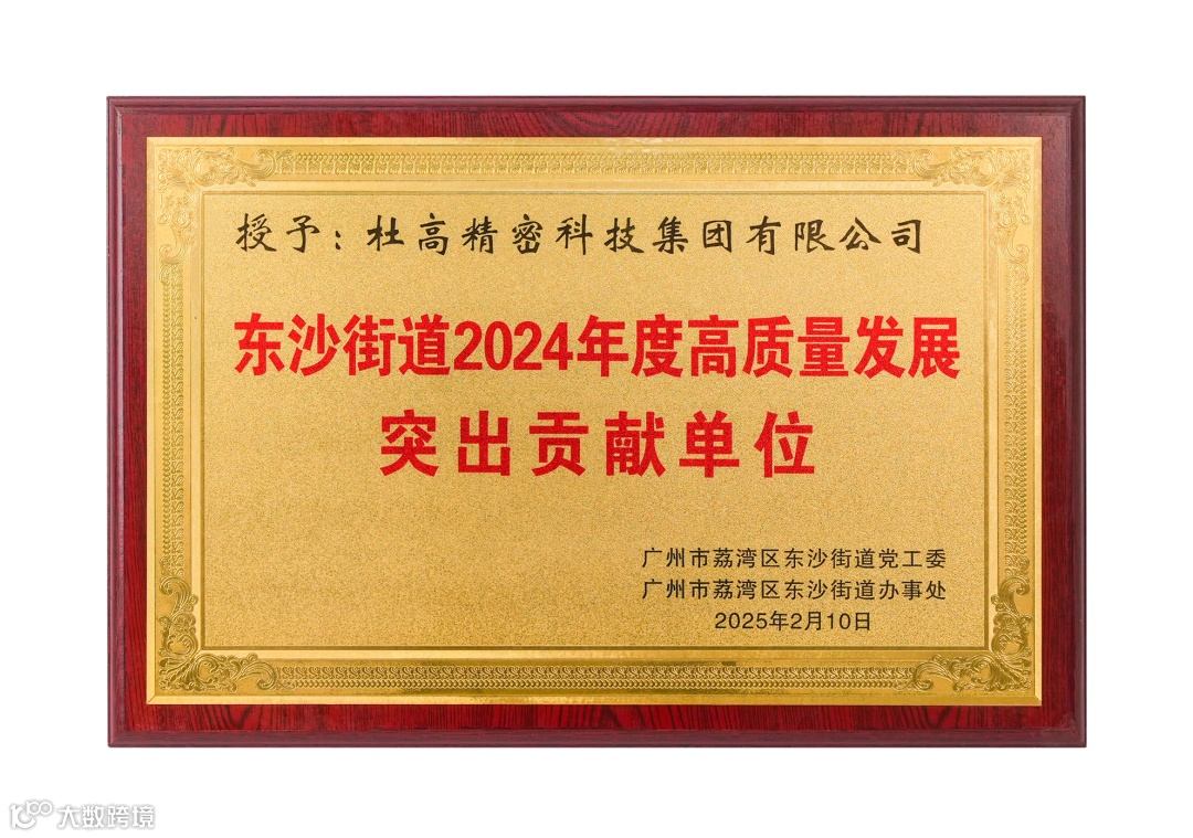 2月10日,在东沙街道召开2025年高质量发展大会上,杜高精密科技集团有限公司凭借其卓越的创新能力和对地方经济发展的显著贡献,荣获了由广州市荔湾区东沙街道党工委和东沙街道办事处联合颁发的“2024年度高质量发展突出贡献单位”称号。这一荣誉不仅是对杜高过去一年工作的肯定,更是对其未来发展的激励。