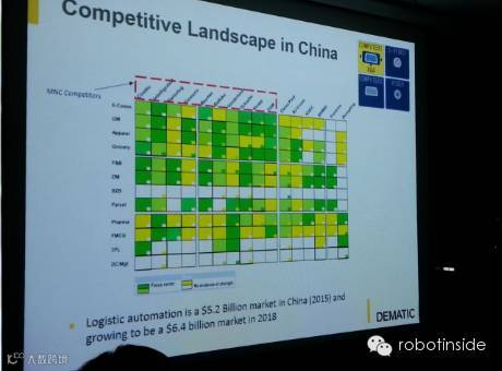 德迈科董事长黄建中表示,未来厂内智能物流市场空间很大,电商、快递行业的增长率也很高,不过外企总包的机会较大,国内系统集成商一般做分包。