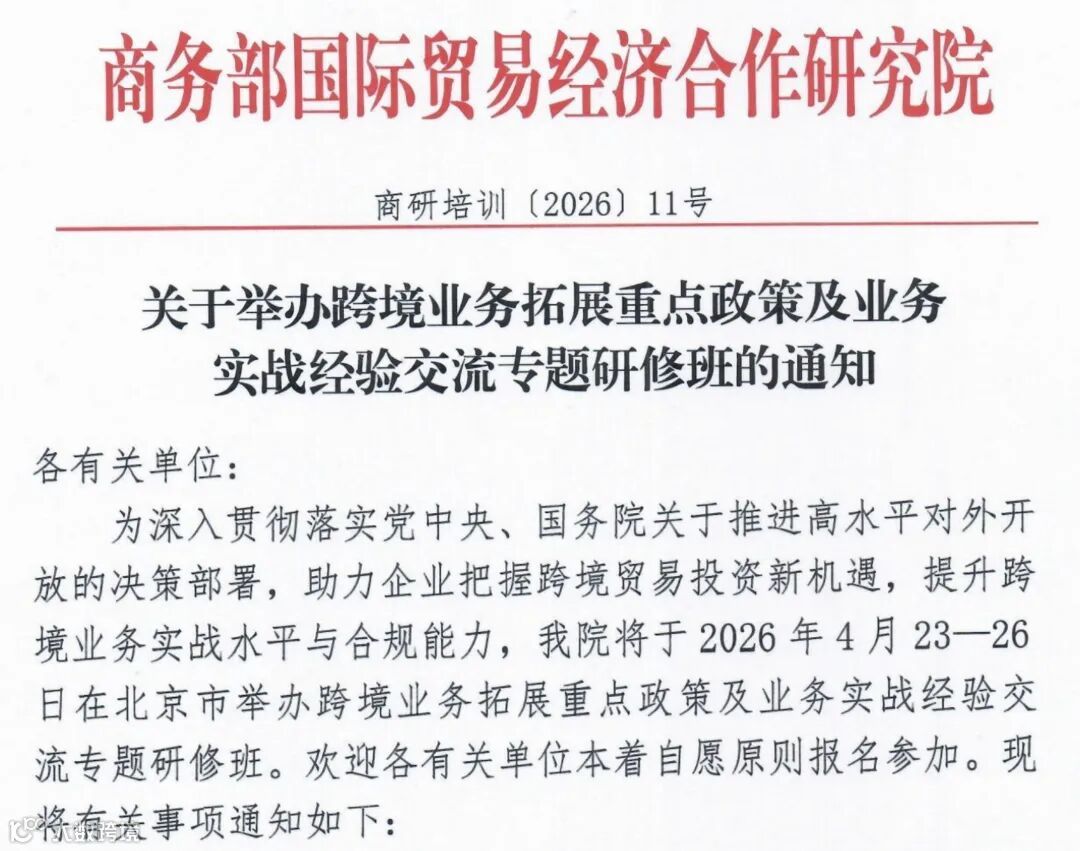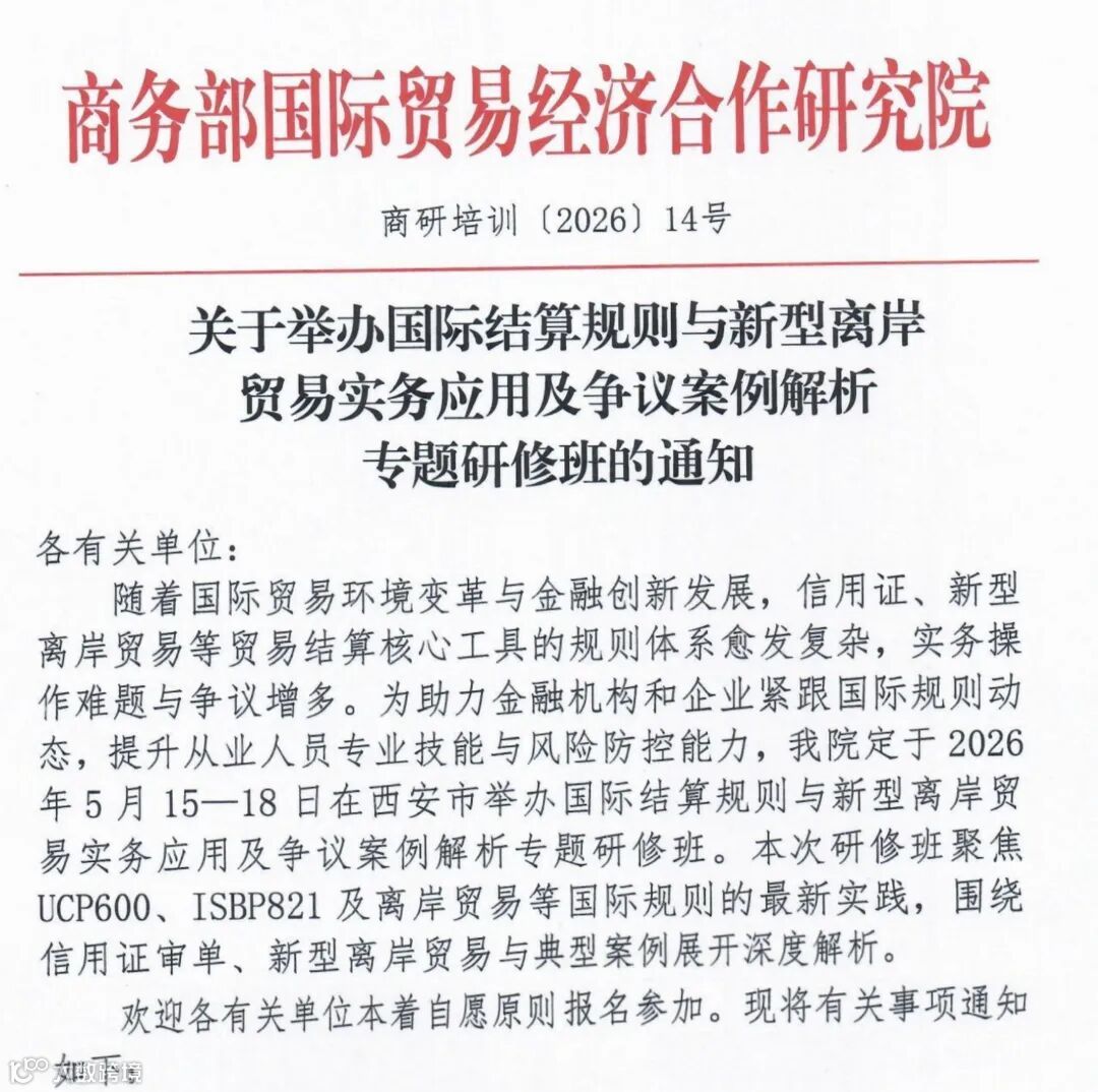 近期,商务部国际贸易经济合作研究院官网“重要通知”栏目发布了两项专题研修通知,一项聚焦“跨境业务拓展重点政策及业务实战经验交流”(11号文),另一项聚焦“国际结算规则与新型离岸贸易实务应用及争议案例解析”(14号文)把这两项内容放在一起看,其实对应的正是当下跨境企业最需要补齐的两块能力:一块是业务往哪里走、政策怎么理解,另一块是交易怎么落地、风险怎么控制。