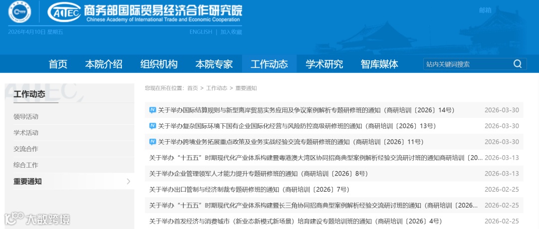 商务部国际贸易经济合作研究院官网已发布通知【2026】11号文与14号文