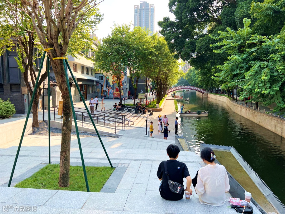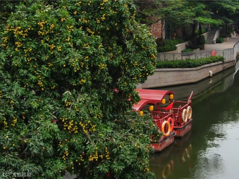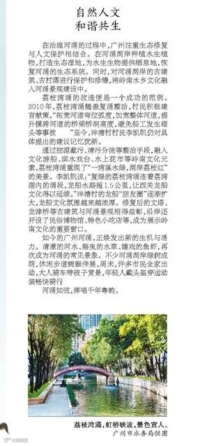 ▲荔枝湾涌沿岸重现“一湾清水绿,两岸荔枝红”