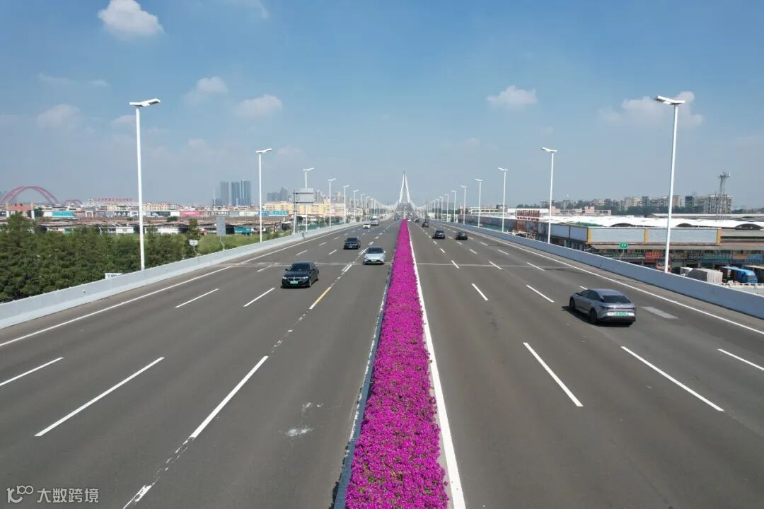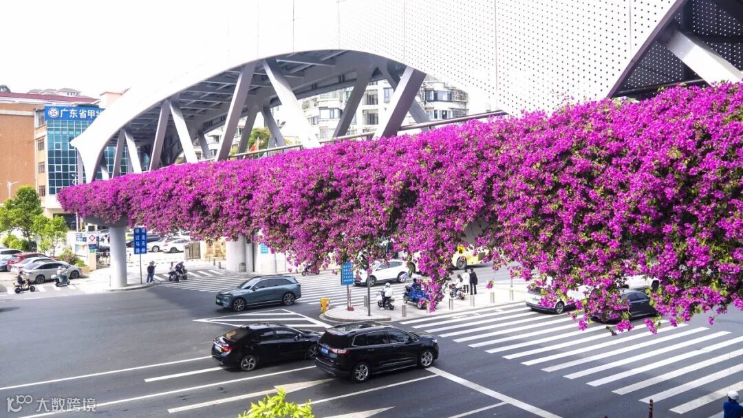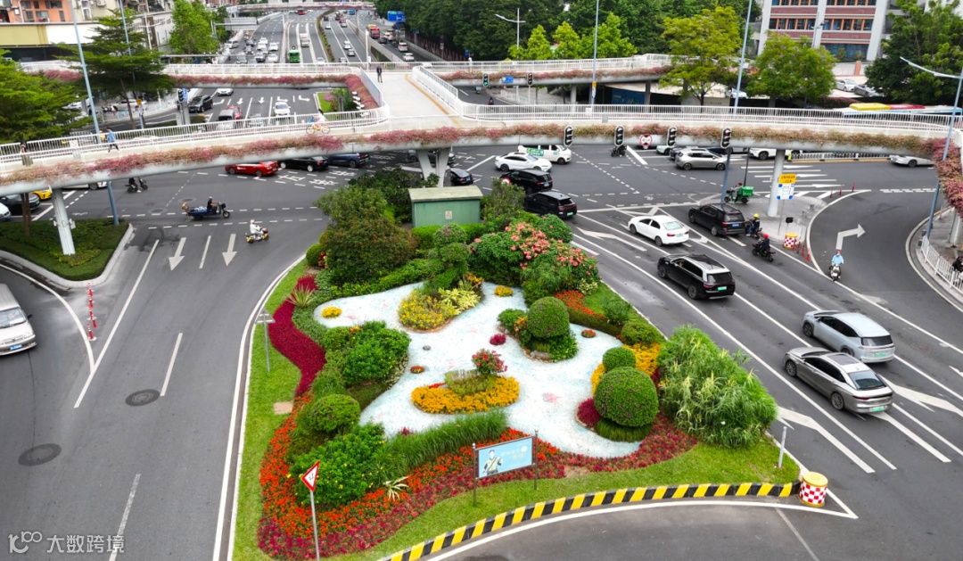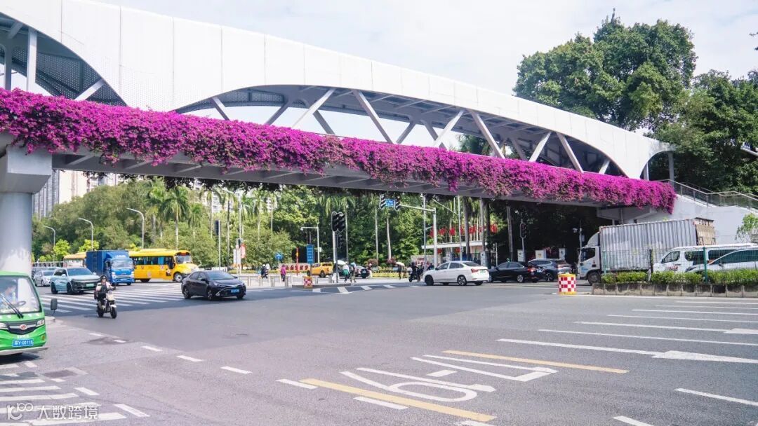 天桥花廊,与车流相映成画