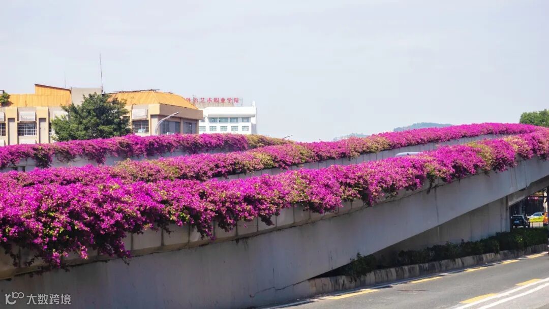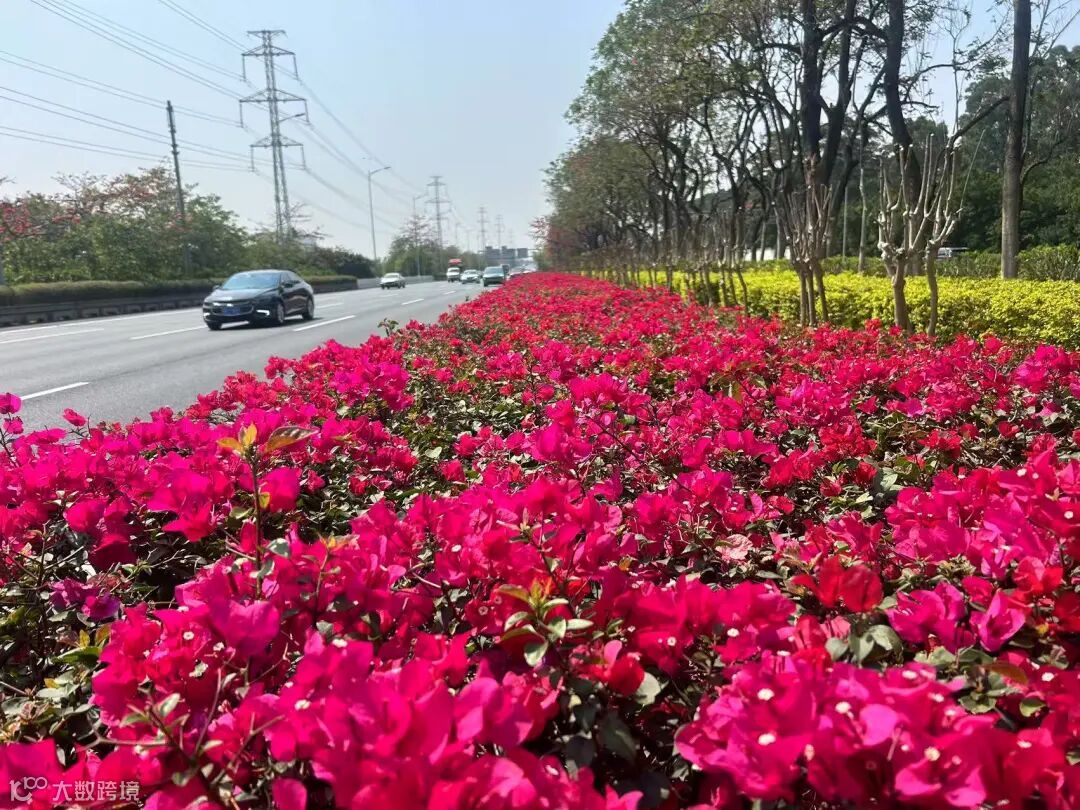 经过精心养护的黄埔大道中、广汕路等天桥与立交,簕杜鹃如期绽放,形成一条条飞跃城市的空中花廊。花开时节,灿若云霞,与车流交织成动态风景。