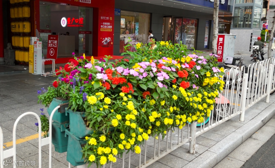 花箱挂花,点缀街角韵味