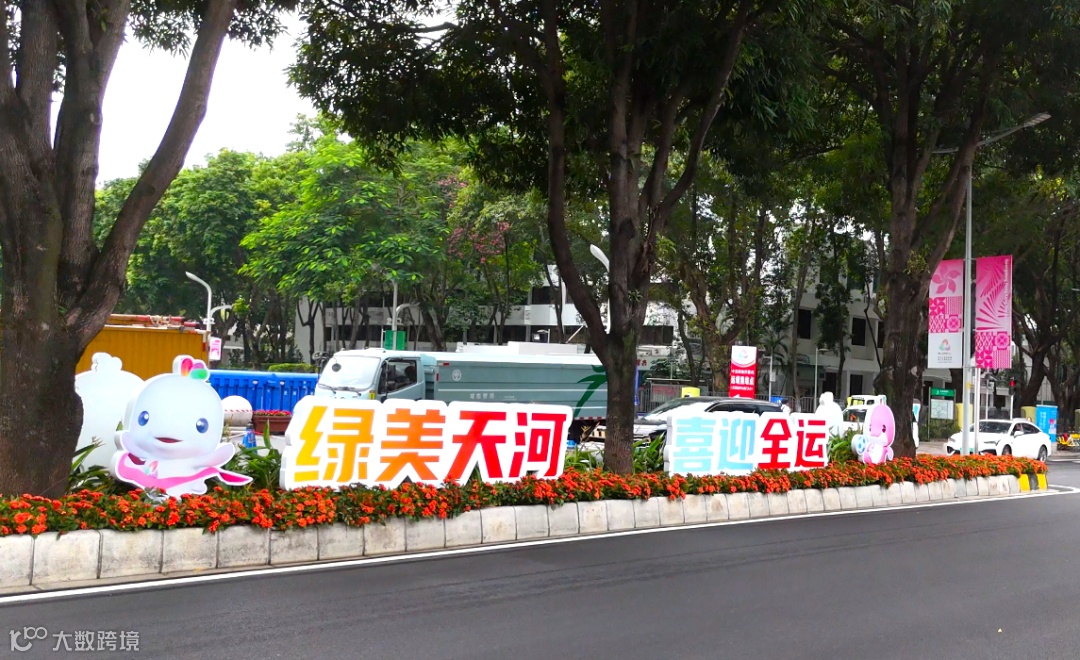 在天河区重要节点还设置了全运会宣传标语及绿墙,既美化城市界面,又传递拼搏向上的体育精神,营造出人人参与、喜迎全运的浓厚氛围。