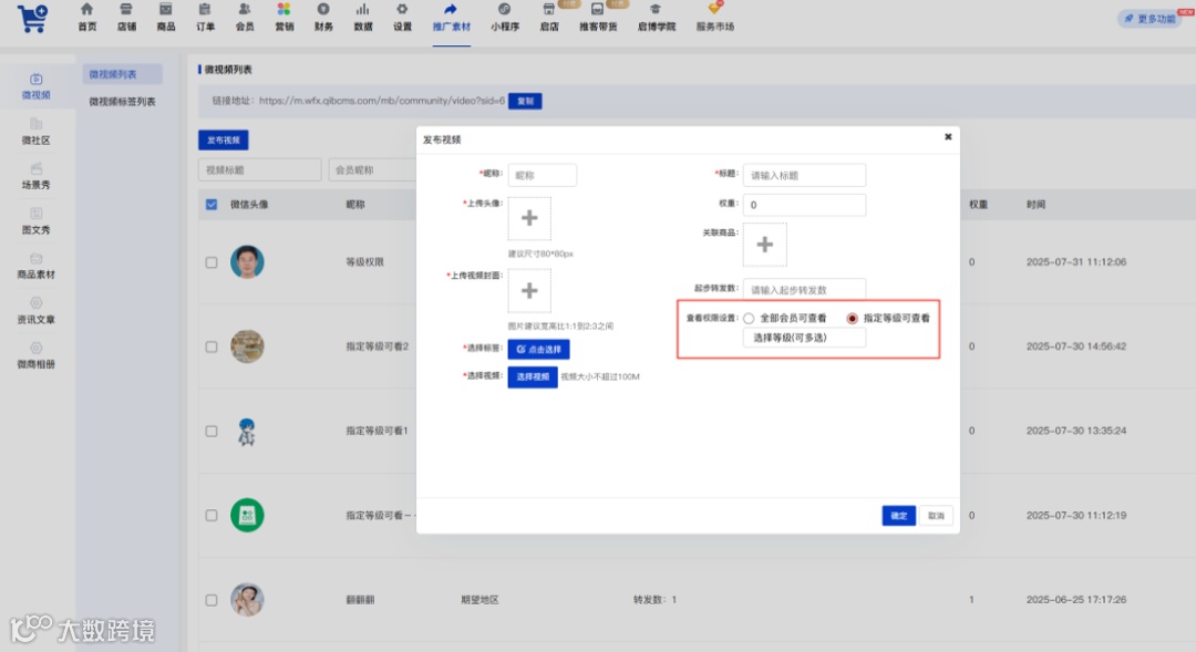 功能介绍:微视频增加会员等级权限设置