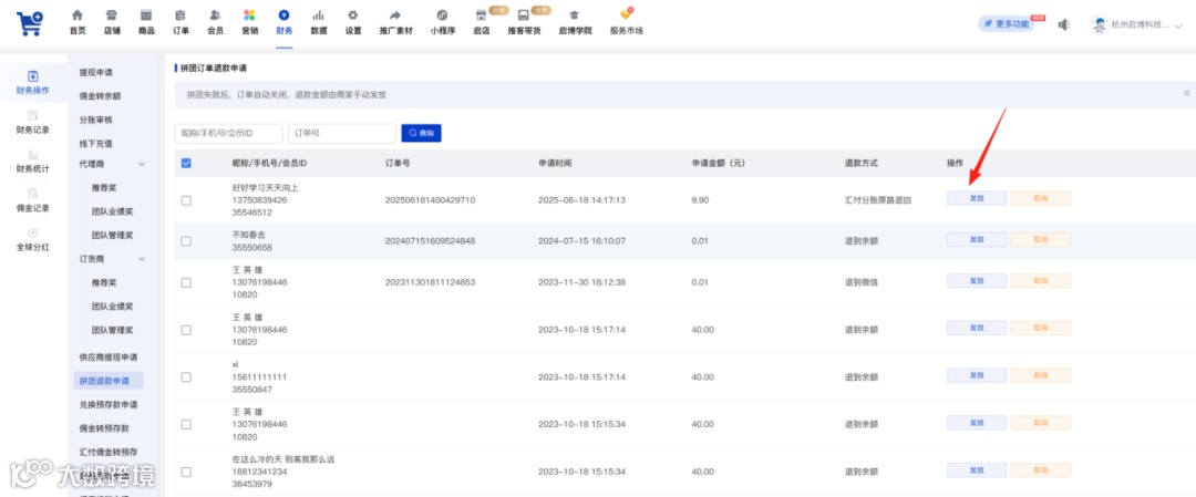 汇付余额和预存款支付的拼团订单,支持在线退款
