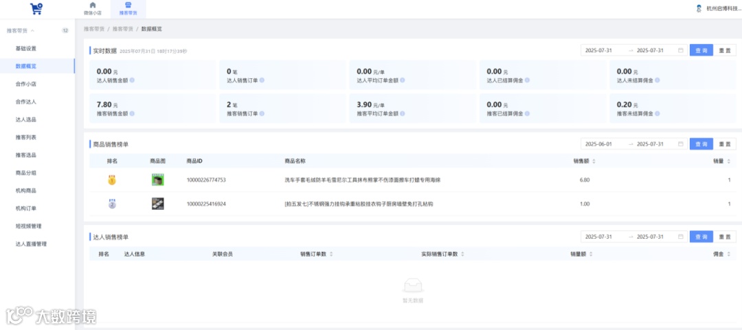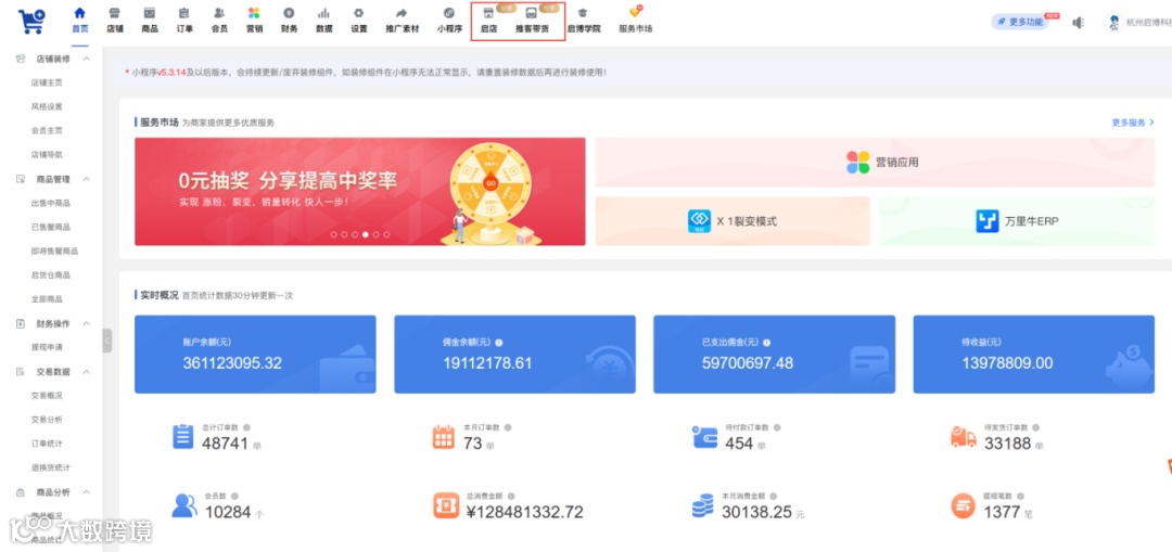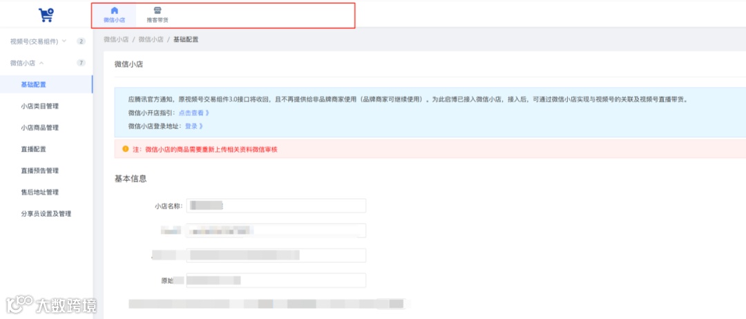 功能介绍:新版后台取消【商品】、【数据】、【营销】菜单、【推客带货】变为一级菜单