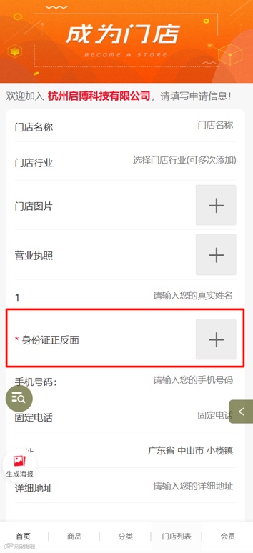 功能描述:门店申请增加身份证正反面上传条件