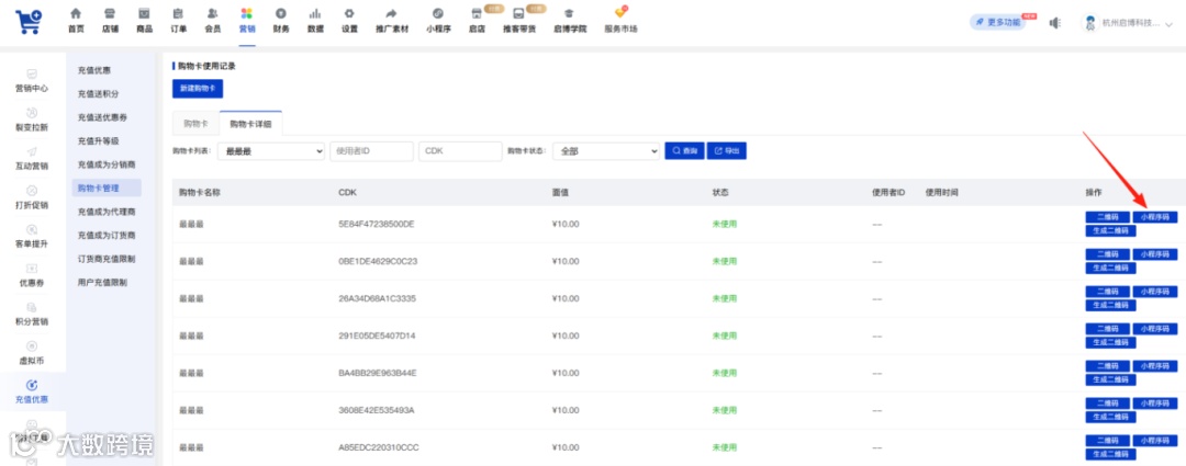 功能描述:购物卡新增小程序码