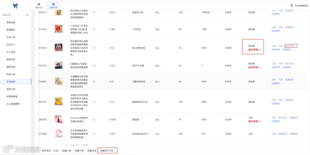 机构商品中达人商品选中失败后,可根据新设置的达人佣金比例执行计划 重新同步