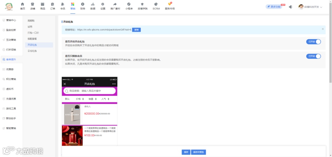 开店礼包(小程序)【新增】;