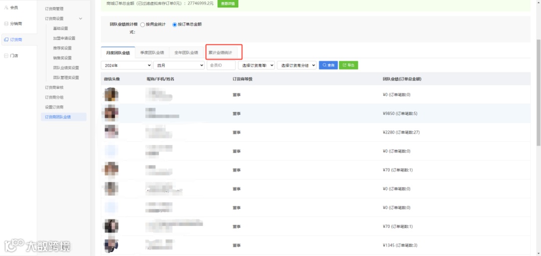 订货商累计业绩