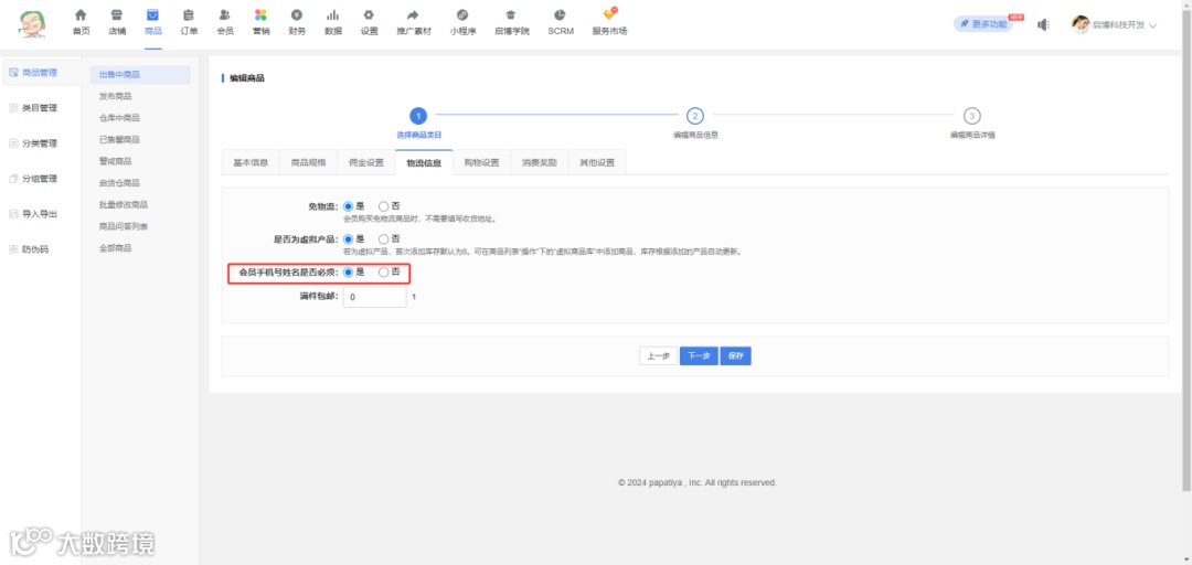 免物流且需要填写姓名和手机号时,下单时可直接在提交订单页面填写且下单成功后会自动同步至个人资料