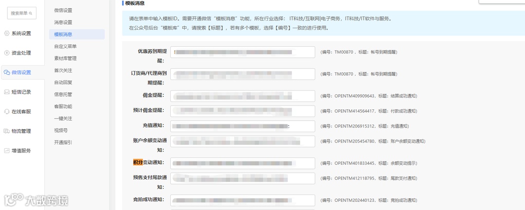 上一版本中的积分消息通知模板在微信官方已经下架,现已对接最新
