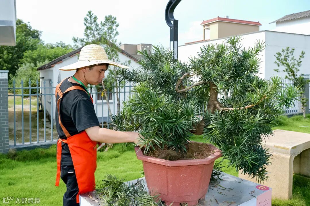 卢永钊作品《飘然》,通过精心构思和巧妙安排罗汉松的枝条、叶片和根部等元素,使盆景在有限的空间内展现出无限的延伸感不仅能让罗汉松盆景显得更加立体和生动,引导观赏者的视线流动,从而感受到一种飘然欲仙的意境。