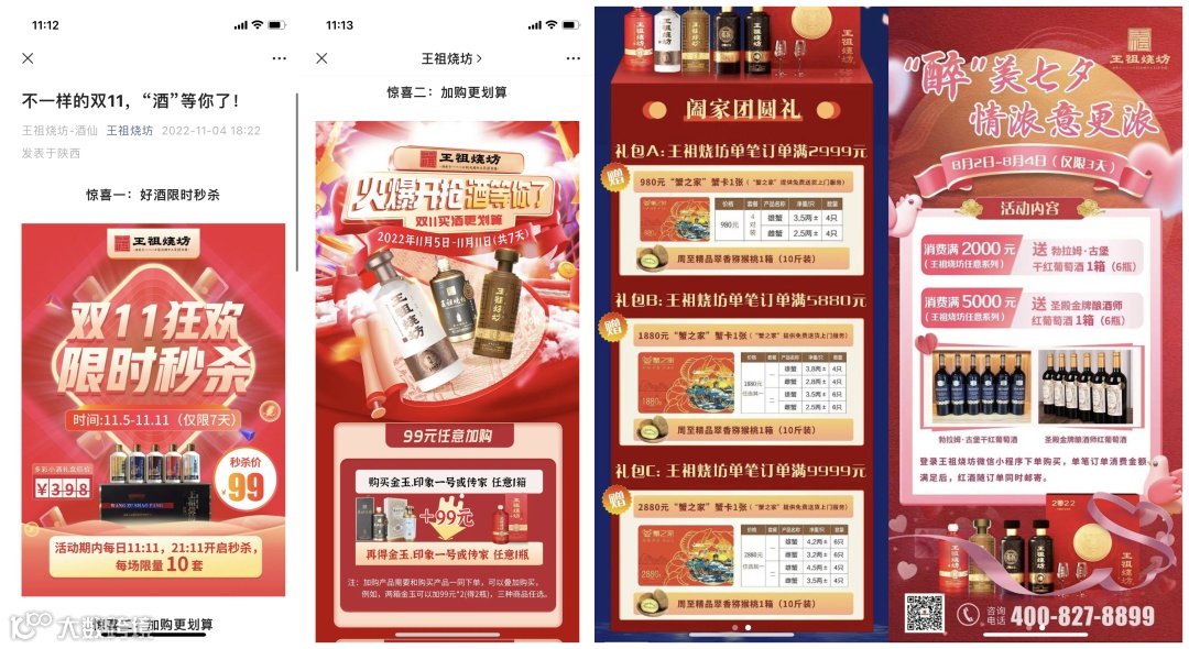 王祖烧坊适逢传统节日、大促营销节,商城内会上线特惠福利给到消费者,如“满赠”、“秒杀”等营销活动。