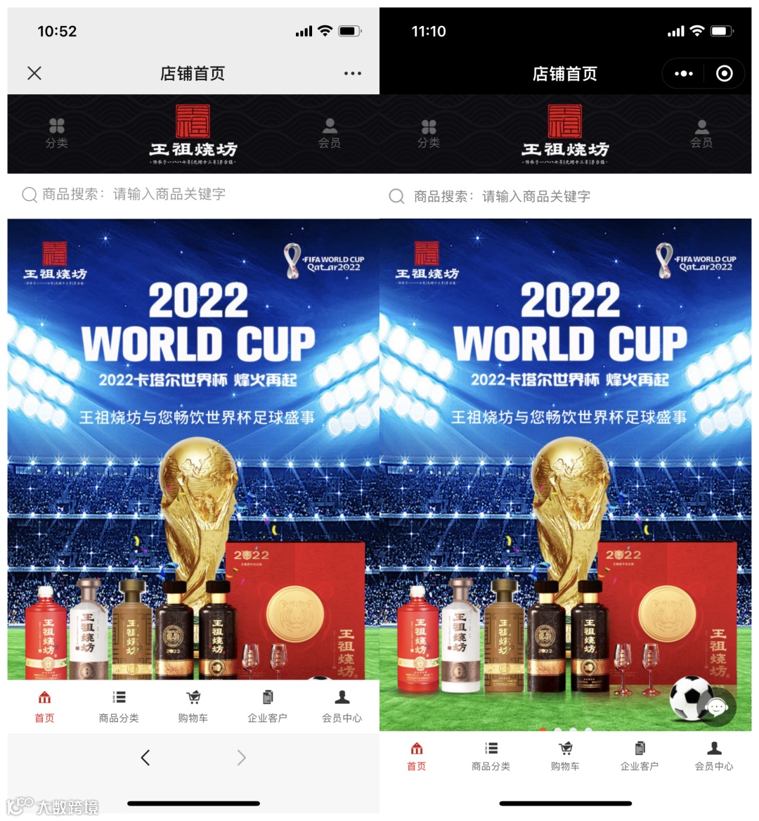(左:王祖烧坊微商城;右:王祖烧坊小程序)