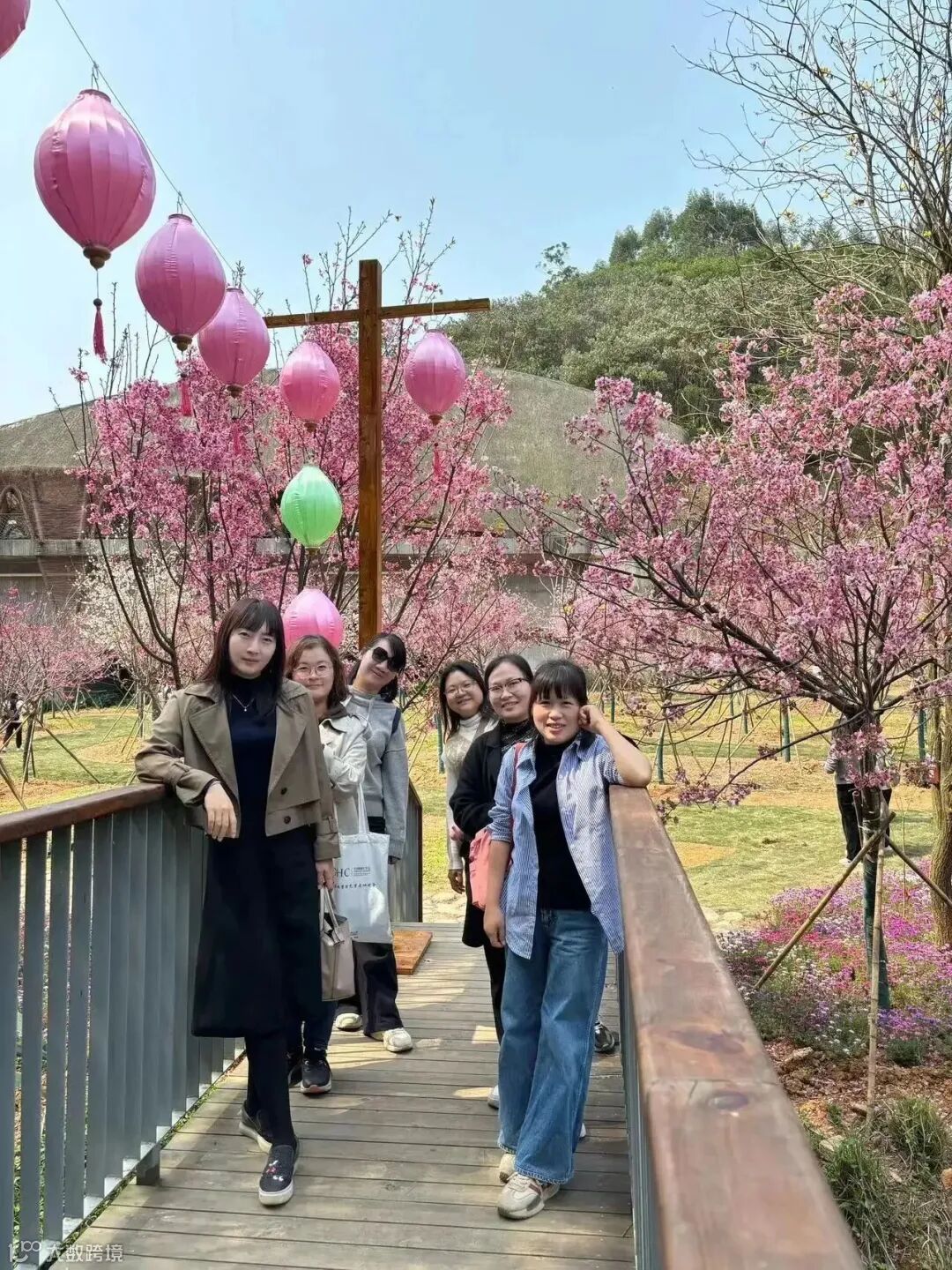 下午,女职工们说说笑笑来到距离钱岗古村不远的天人山水艺术园。那里四周山峦叠翠,湖光粼粼,美景怡人。乘坐穿梭巴士,欣赏沿途的风景,春风拂面,花香扑鼻,令人心旷神怡。大家在园区内尽情领略大自然的壮美风光,感受艺术的无限可能,体验田园生活的宁静与美好。