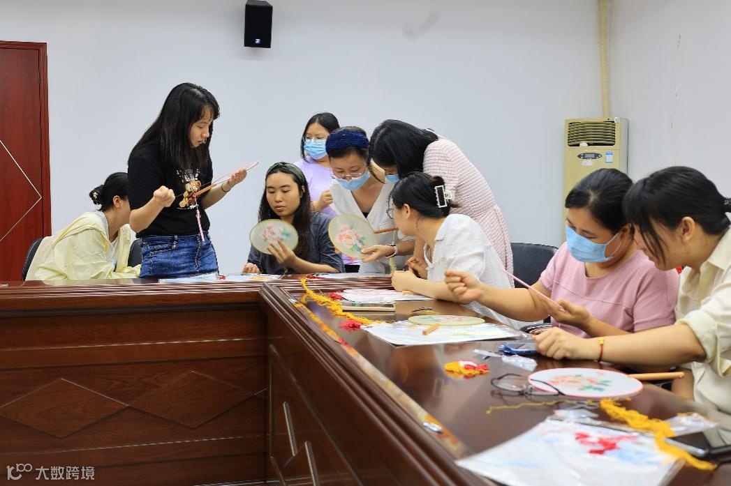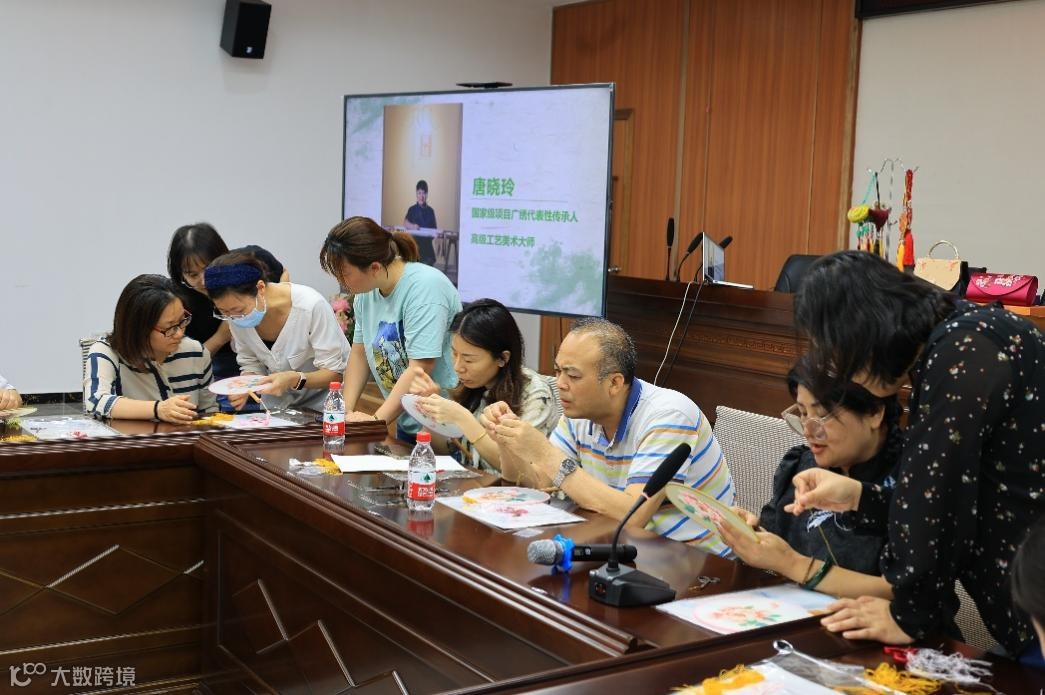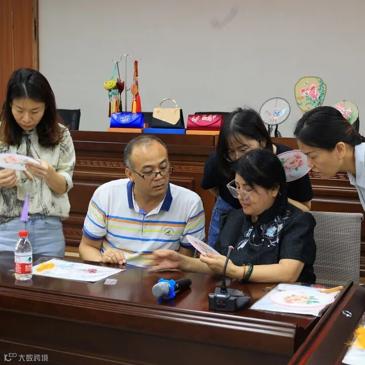 本次活动邀请了国家级项目广绣代表性传承人、高级工艺美术大师唐晓玲老师为大家进行讲解,并现场示范教学。唐晓玲老师教大家运用三种较为适用的绣法在扇面上绣制牡丹等花样图案。职工代表们手拿针线、握紧团扇,在一挑一拨一捻中,感受最纯粹的心境。