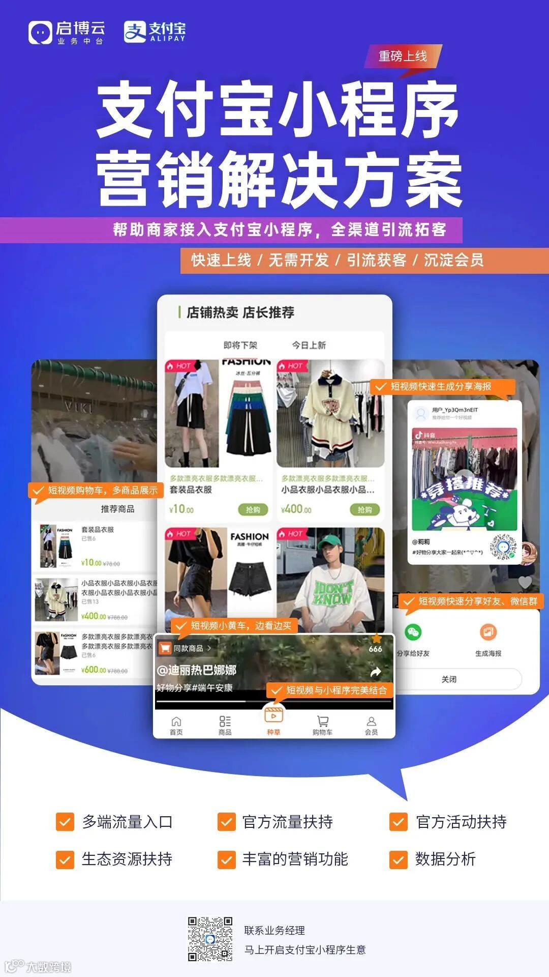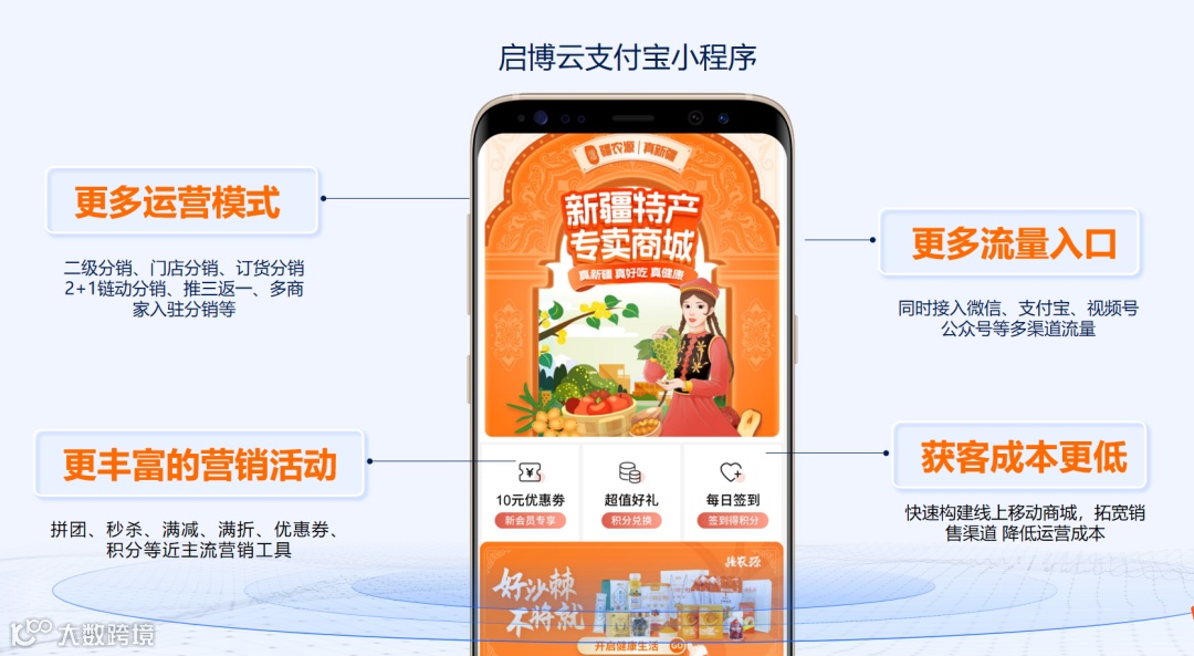 启博已与支付宝小程序达成合作,并发布「支付宝小程序营销解决方案」。启博将帮助商家接入支付宝小程序,而支付宝将为启博商家开放多端流量入口,并提供流量扶持、活动扶持、生态资源扶持等多维度支持。