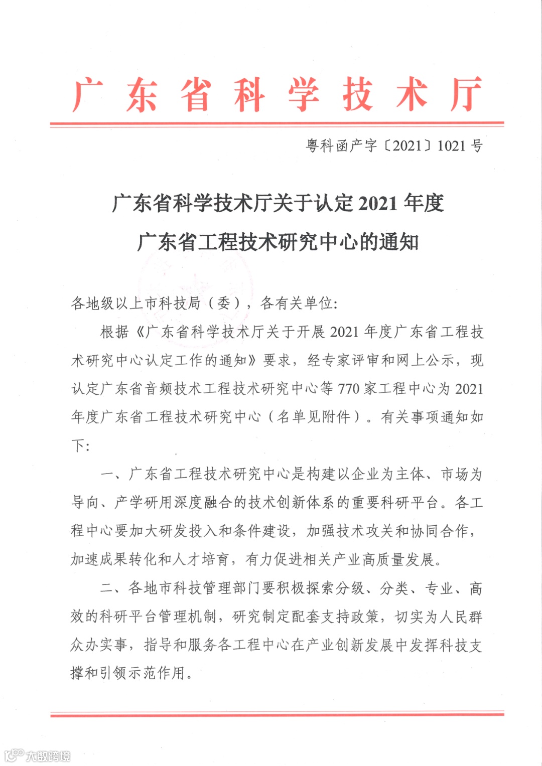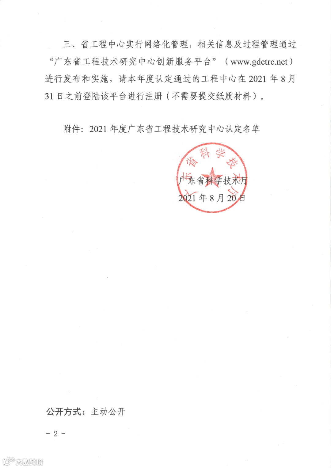 热烈祝贺名卉公司获得广东省工程技术 研究中心认定