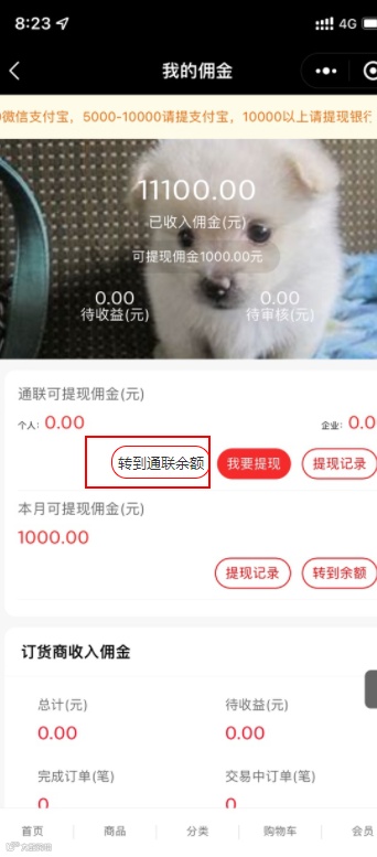 使用通联分账的用户可以将佣金转为余额,并且可以再次进行消费;