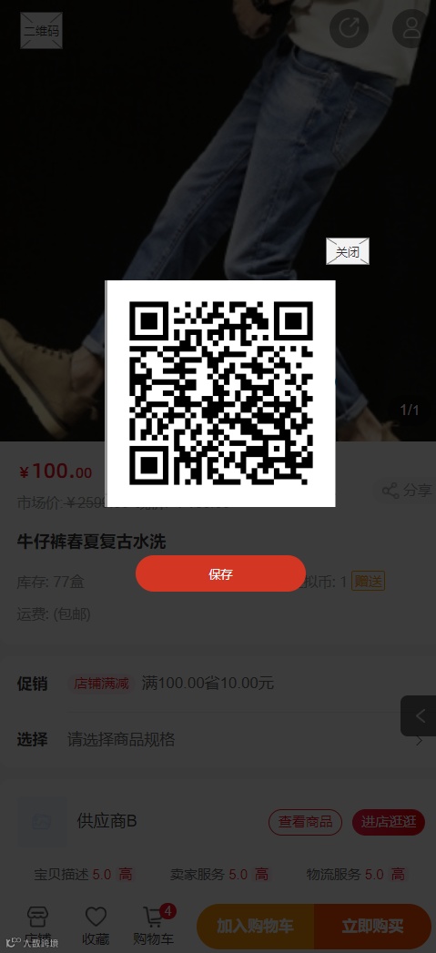 开启新ui样式的商家,在商品详情页可以使用生成二维码的操作;