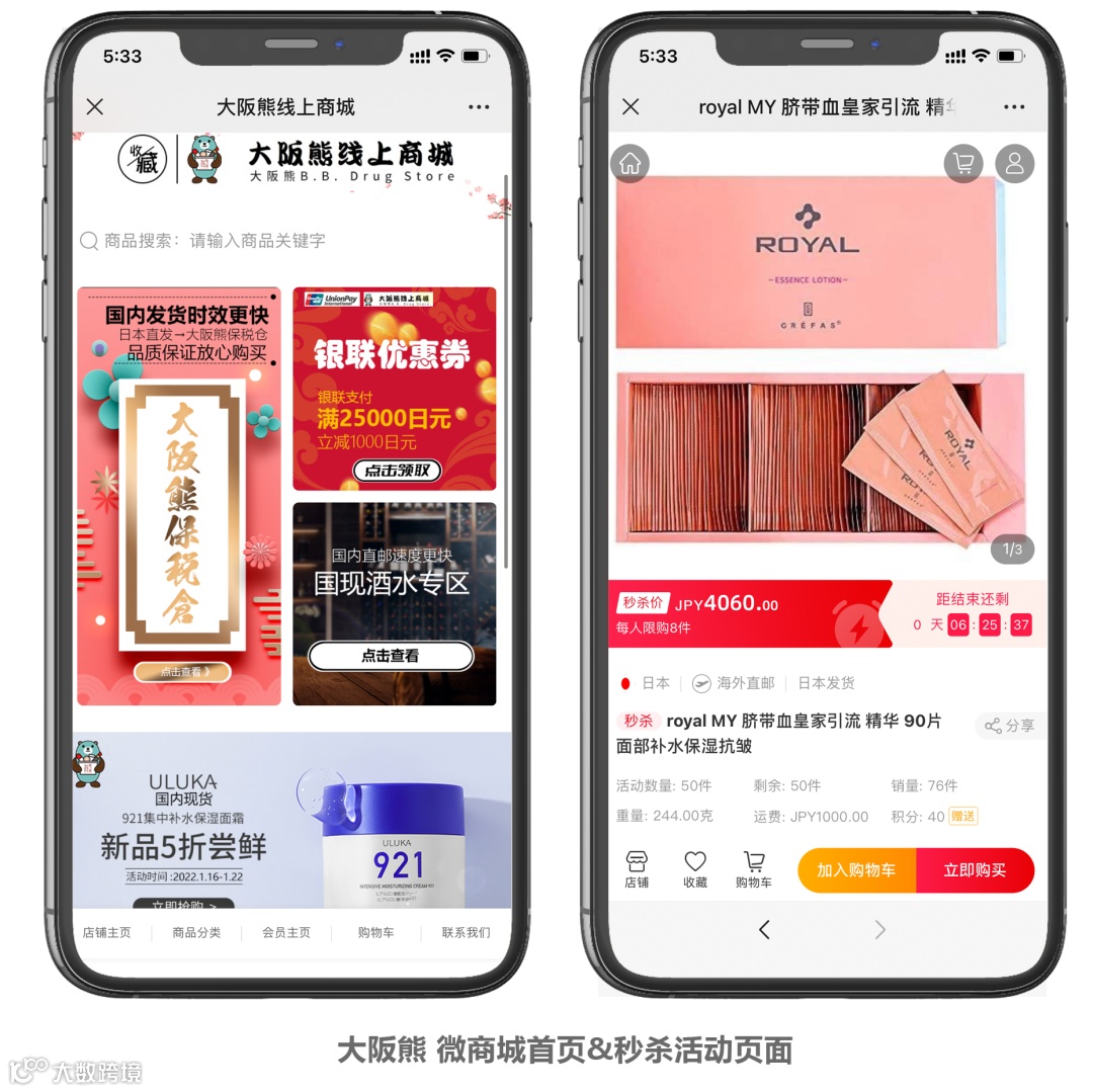 启博微分销协助大阪熊快速搭建了线上私域商城,通过“线上商城+秒杀+直播”三驾马车并驾齐驱,以日本直邮的形式架起了大阪熊与中国用户之间的桥梁。