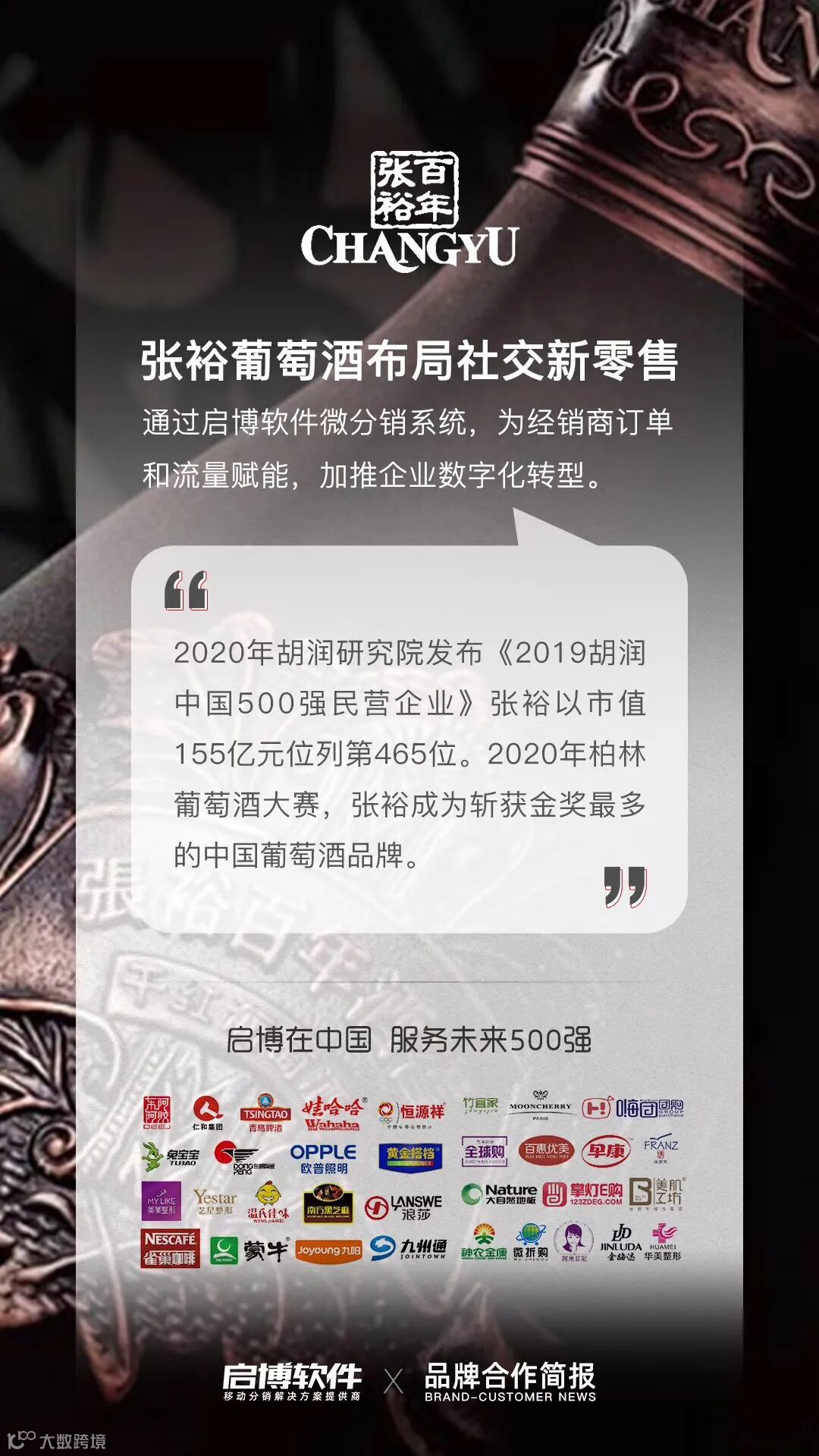 启博云微分销正式签约张裕葡萄酒,通过启博云积极布局社交新零售,为经销商订单和流量赋能,加推企业数字化转型