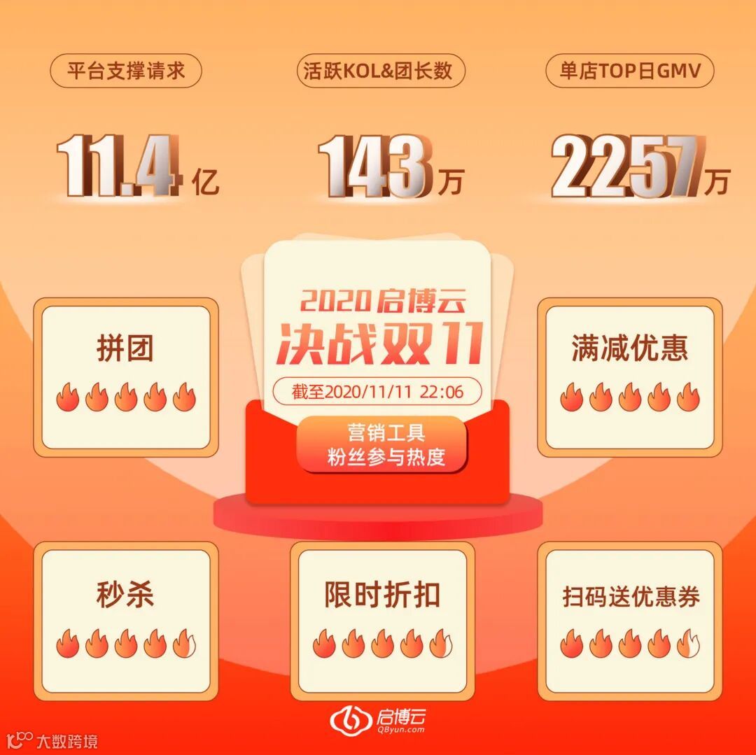 启博云“决战双11”,截止11日22:06:启博云平台共支撑11.4亿次请求,峰值PV超过200万,同比2019年增长38%。其中,社群团购板块,GMV同比增长368%,订单量增长410%,双11开启第1个小时06分,相继有团长破万单,再次创造新的纪录。